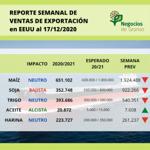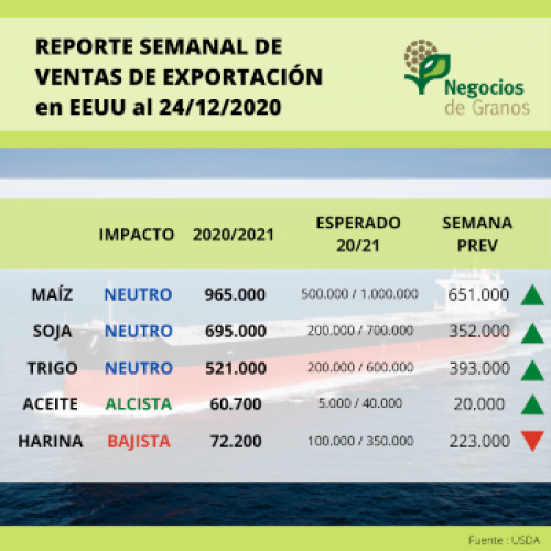 Informe Semanal de Ventas de Exportación EEUU - 31/12/2020
